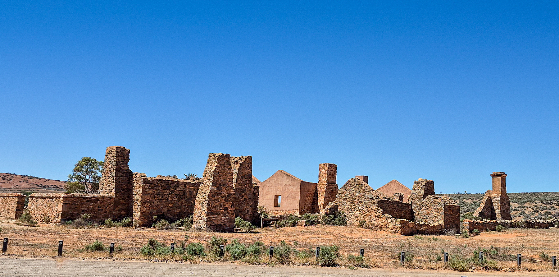 Es sind Sommerferien hier und so finden wir nur einen etwas abgelegenen Stellplatz ohne Wasser/Strom. Die Temperaturen nähern sich der 40 Grad Marke (nach Sonnenuntergang im Auto 37 Grad), was unsere Unternehmungslust ziemlich einbremst. Wir besuchen zumindest den kleinen, charmanten Ort Mintaro, in dem die vielen historischen Steinhäuser eine ansprechende Atmosphäre erzeugen.
