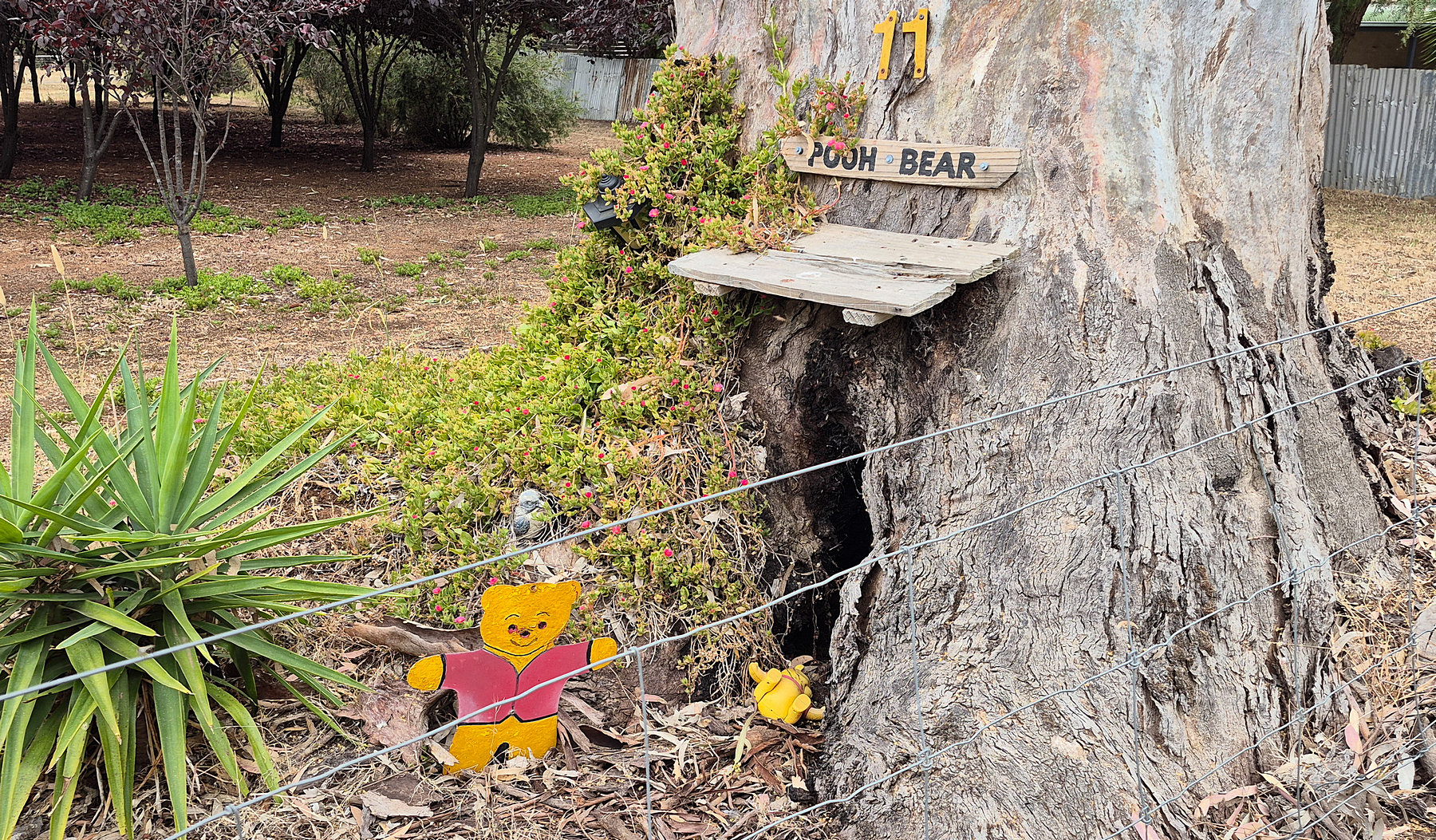 Zufällig haben wir auch herausgefunden, dass Pu der Bär in einem kleinen Vorgarten in Mintaro wohnt