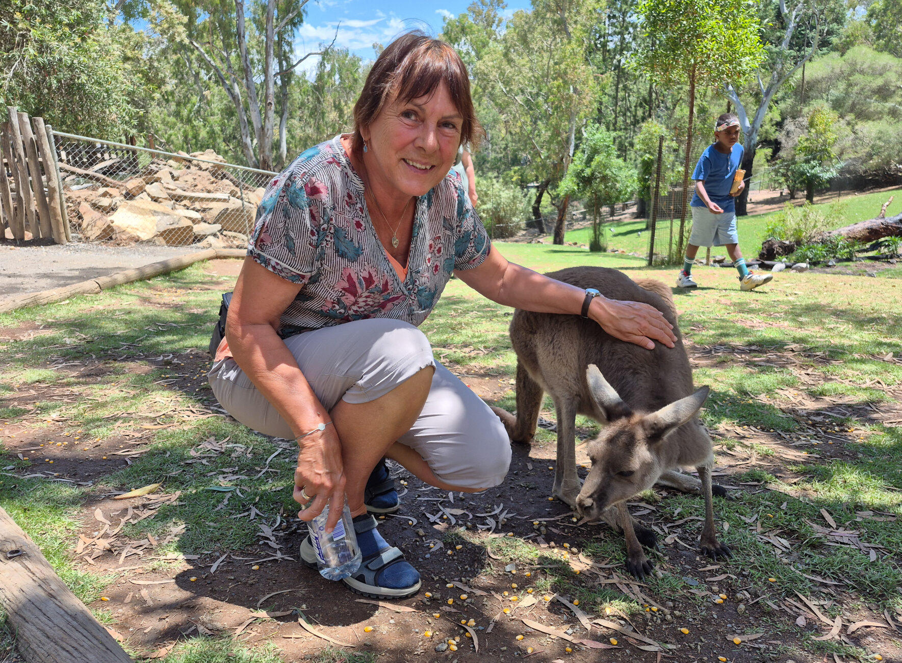 Danach fahren wir (dank Klimaanlage im Auto) eine lohnende Runde auf einer Schotterstraße durch die Flinders, die durch eine außergewöhnliche Landschaft und eine kleine Schlucht führt. Wir sehen viele Kängurus (darunter auch hübsche Fels-Wallabies) und Emus. Am Ende der Fahrt stehen wir kurz vor Sonnenuntergang noch auf einem schönen Aussichtshügel.