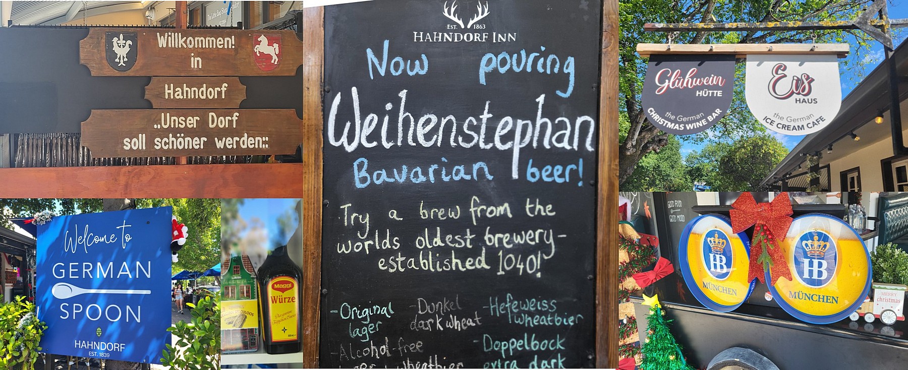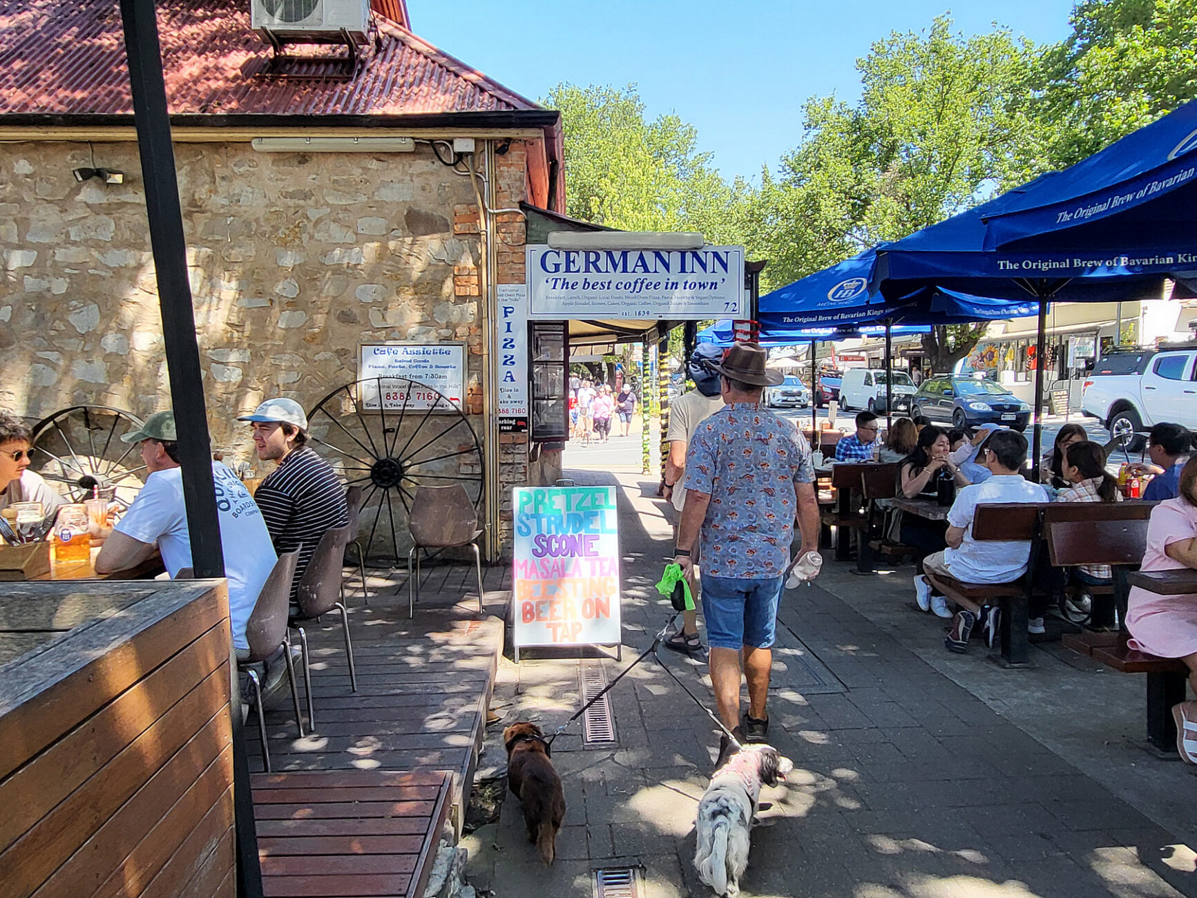 Danach besuchen wir Grant (ebenfalls Explorer-Fahrer, kennen wir seit Queensland), der sich auf einem Campingplatz in der hier bekannten deutschen Siedlung Hahndorf einquartiert hat. Wir spazieren zusammen durch die supertouristische Hauptstraße mit ihren vielen Cafes und Restaurants, wo es vorwiegend „deutsche Spezialitäten“ gibt (u.a. verschiedenste Würste, natürlich Biere vom Hofbräuhaus und von Weihenstephan, etc.). Hier ist die Hölle los, wir können es fast nicht glauben und mit der Marke „Deutschland“ wird richtig Kohle gemacht.