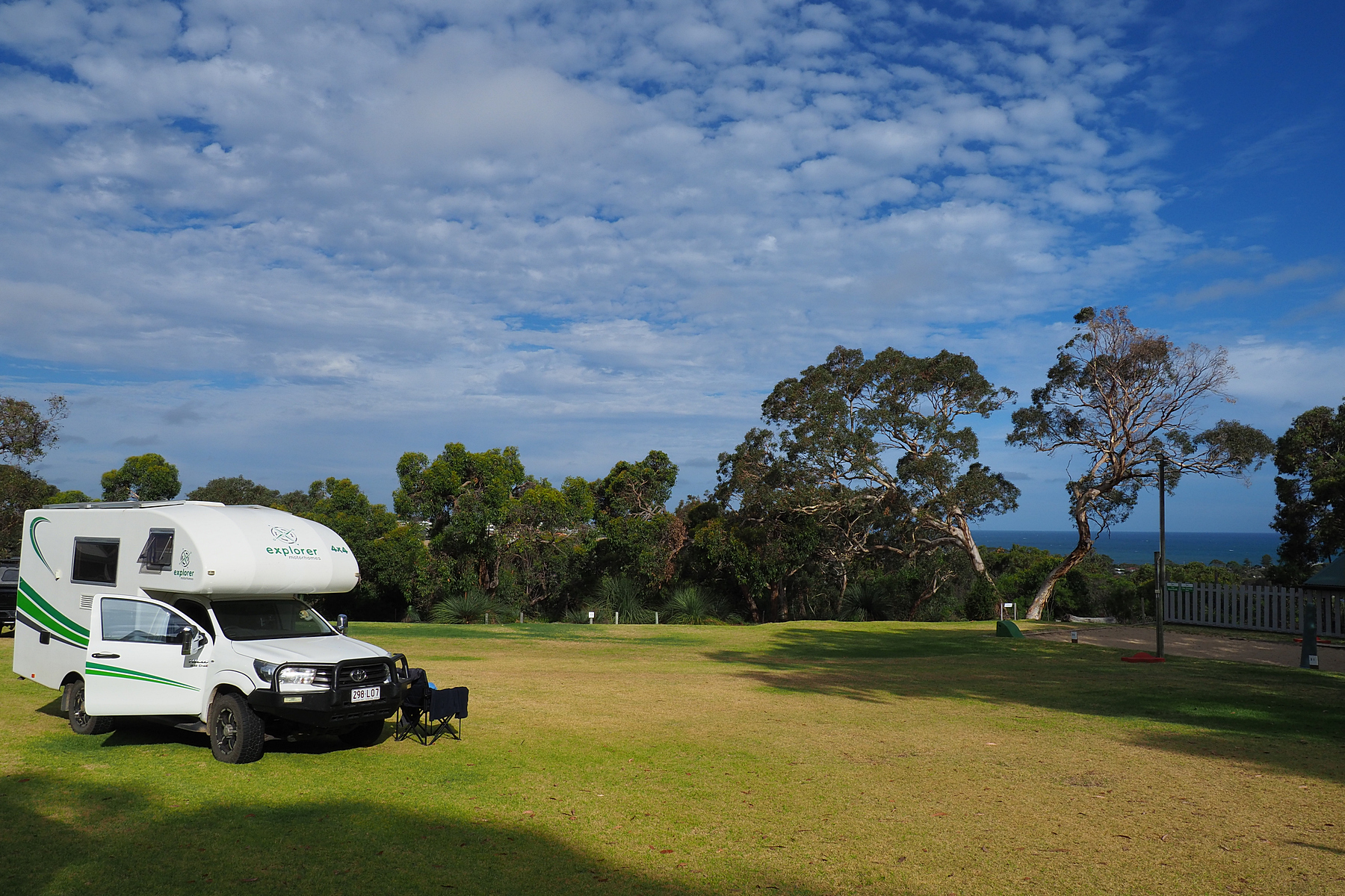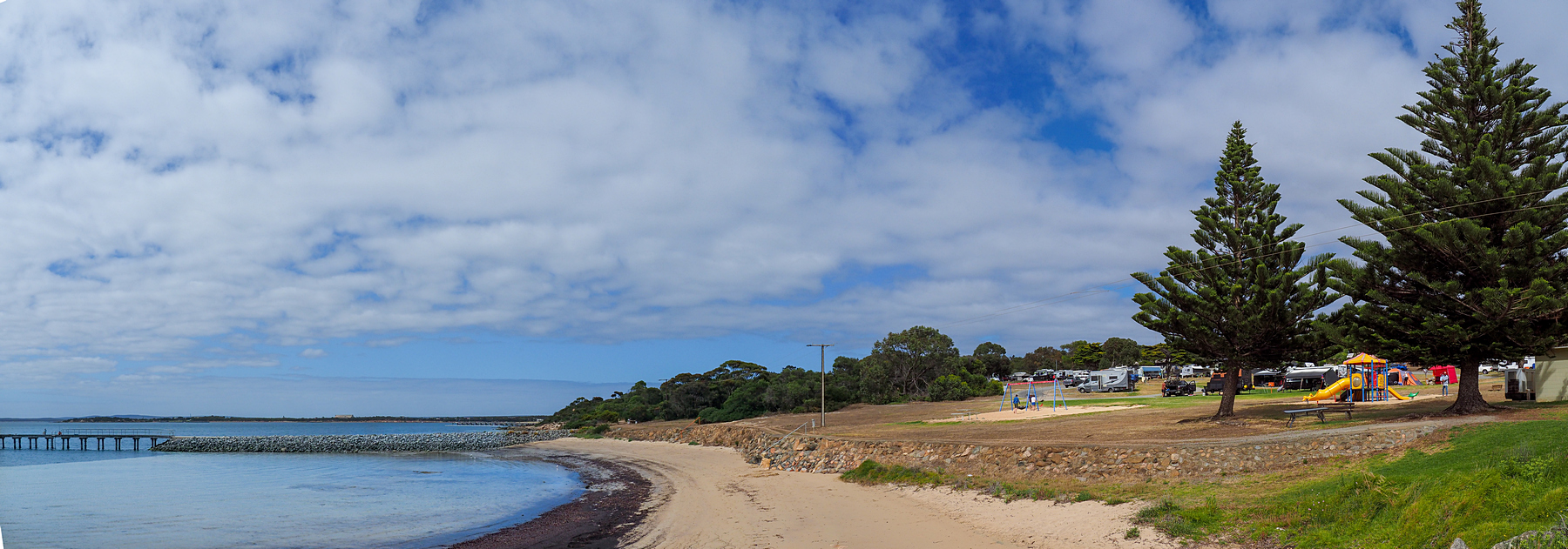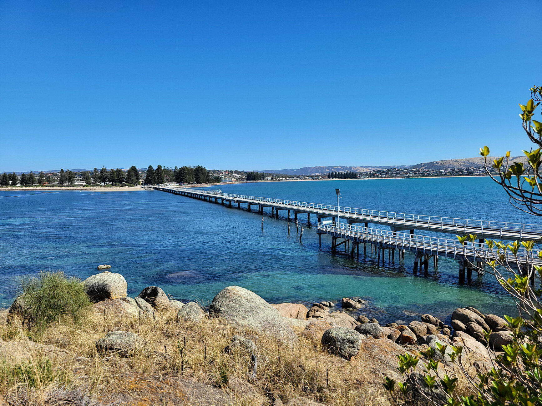 Nächste Station ist Victor Harbour südlich am Meer. Wir bleiben drei Nächte auf einem Gemeinde-Campingplatz hoch am Hang mit herrlichem Blick hinaus aufs Meer, auf dem normalerweise viele Schulkinder campen. Obwohl jetzt zur Hauptsaison praktisch alle Campgrounds ausgebucht sind, ist es hier während der Ferien eher ruhig.