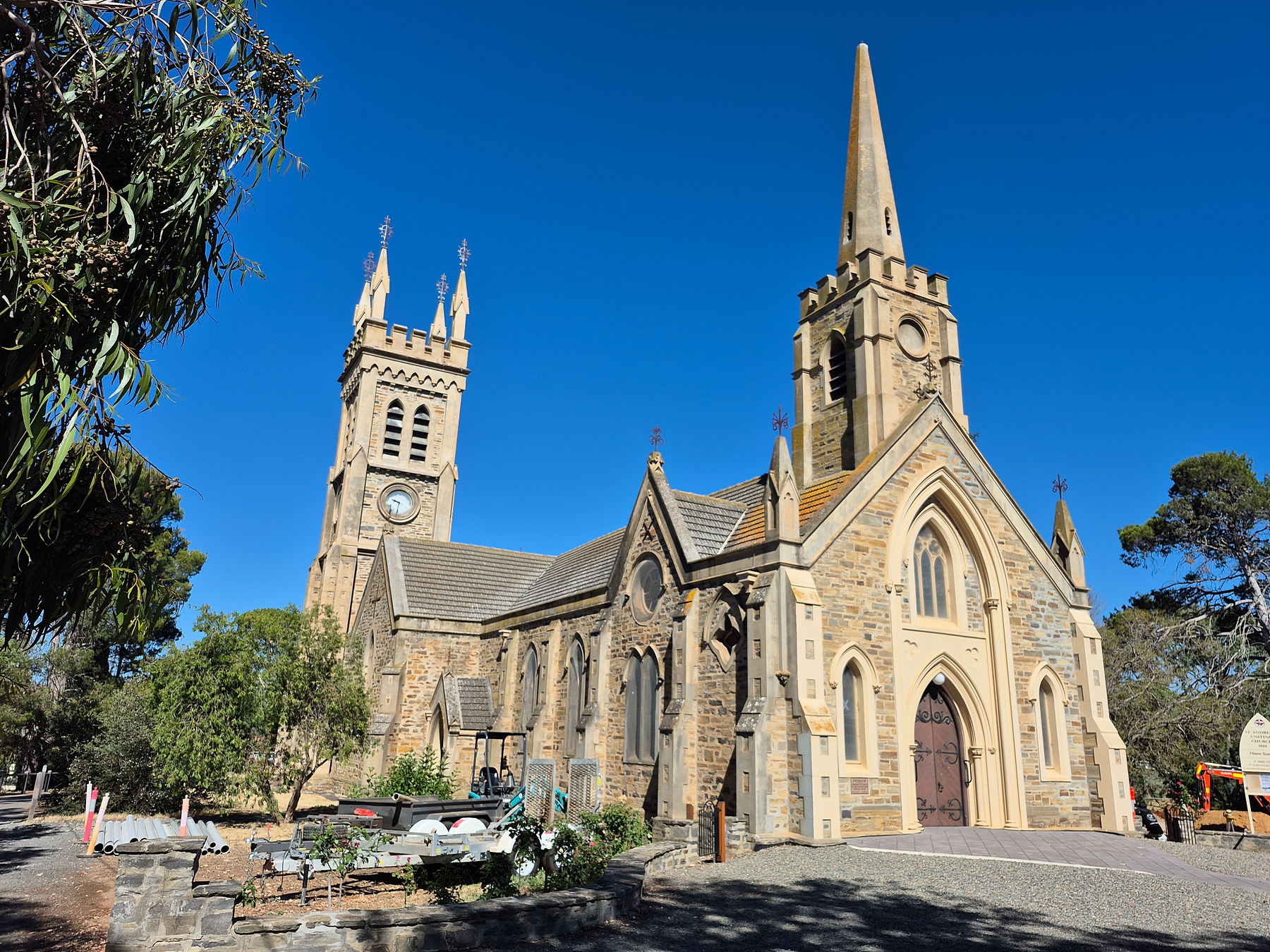 Da es in den nächsten Tagen noch heißer werden soll, brechen wir unsere Zelte ab und fahren auf dem Weg nach Süden in Richtung Adelaide zunächst ins Clare Valley, wo es etwa 30 Weingüter gibt und wo u.a. angeblich der beste Riesling Australiens angebaut wird. Angefangen mit dem Keltern von Wein haben hier die Jesuitenpadres, weil sie dringend Messwein brauchten. 🙂