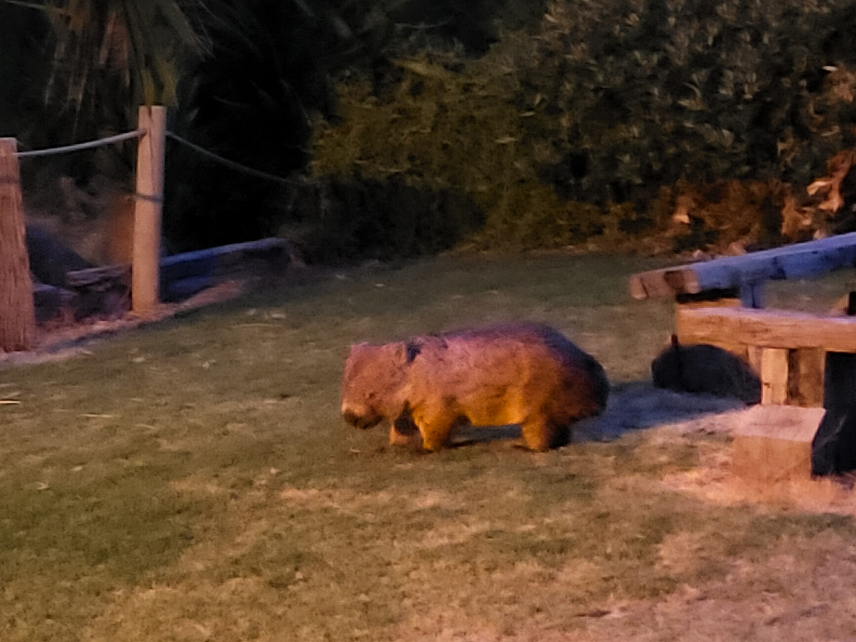 Auf dem Campingplatz in Beachport sehen wir Justin und Russel wieder. Zuletzt haben wir uns am Anfang unserer Reise in Queensland gesehen! Wir sitzen einen Abend bei Bier und Wein zusammen und beobachten bei einbrechender Dunkelheit entzückt ein Wombat, das neben uns aus dem Gebüsch kommt um zu grasen. Ein frei lebendes Wombat hat uns noch gefehlt in unserer Tiersammlung.