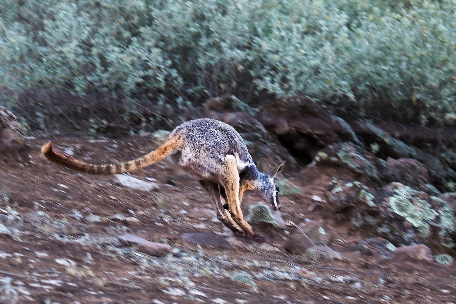 … und durch eine Schlucht, in deren Wänden Fels-Wallabies in Felshöhlen wohnen sollen
