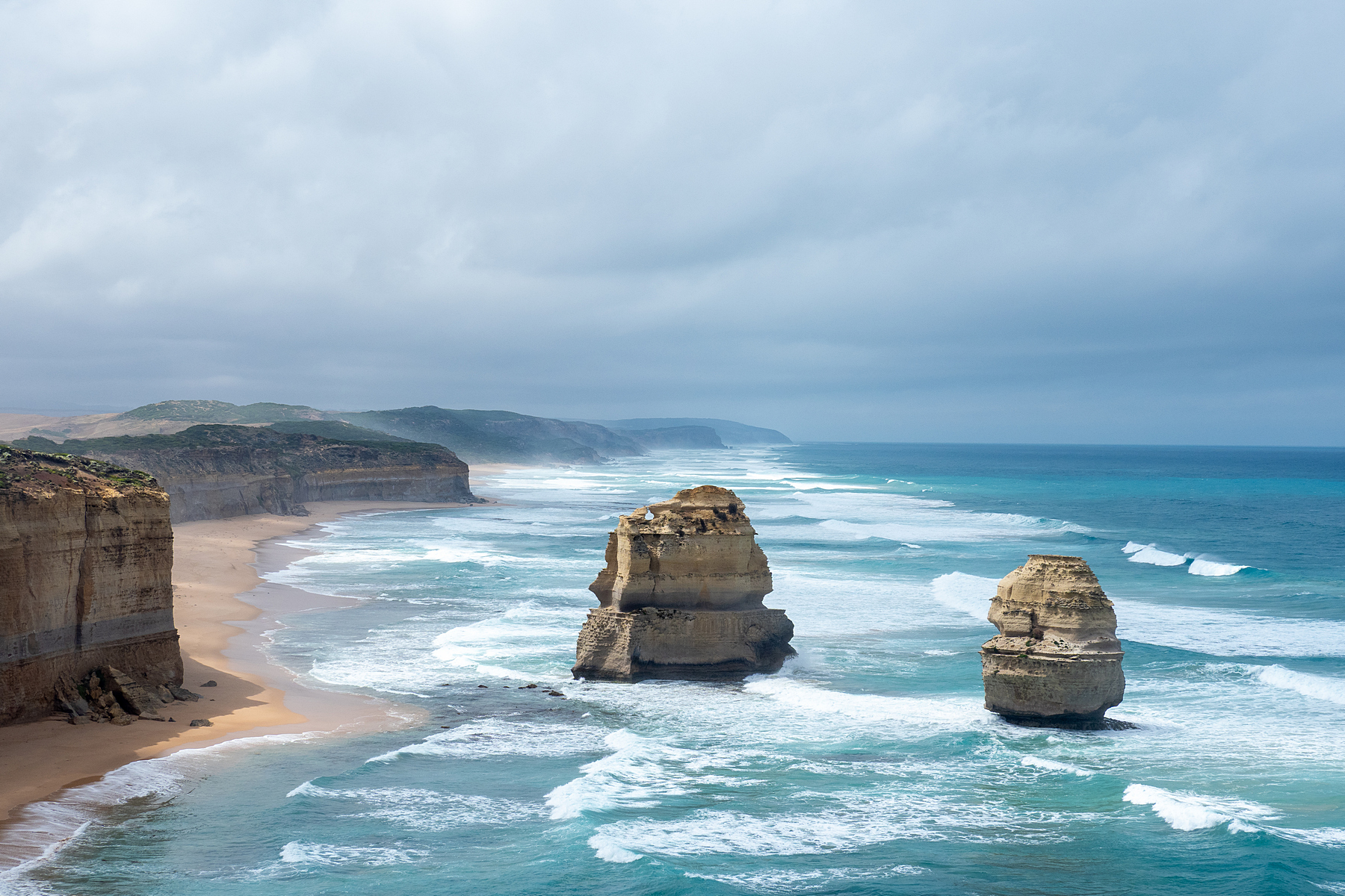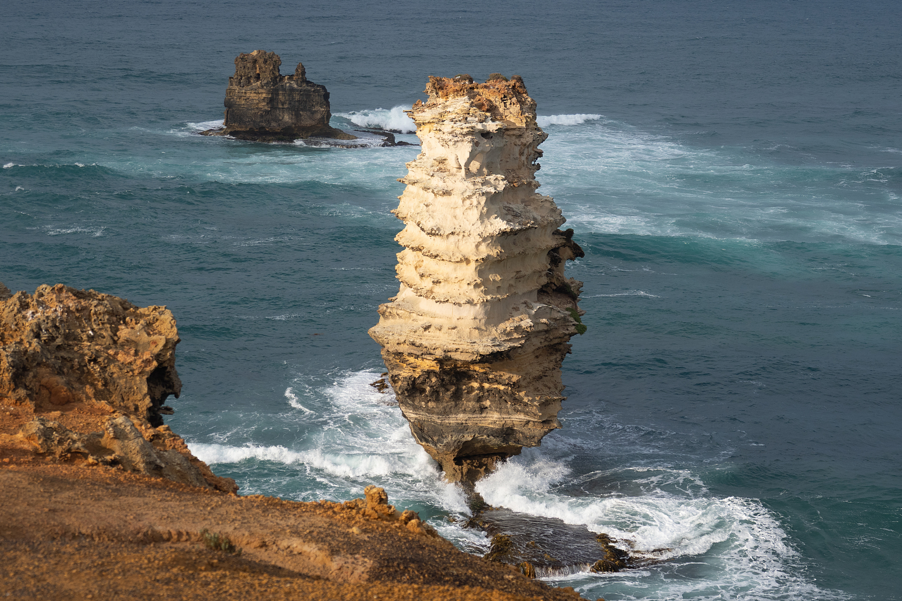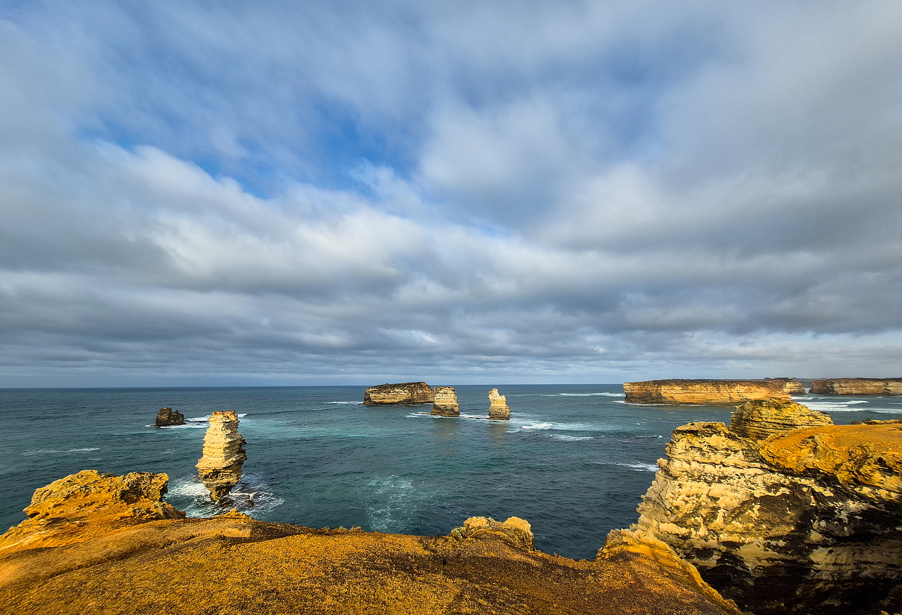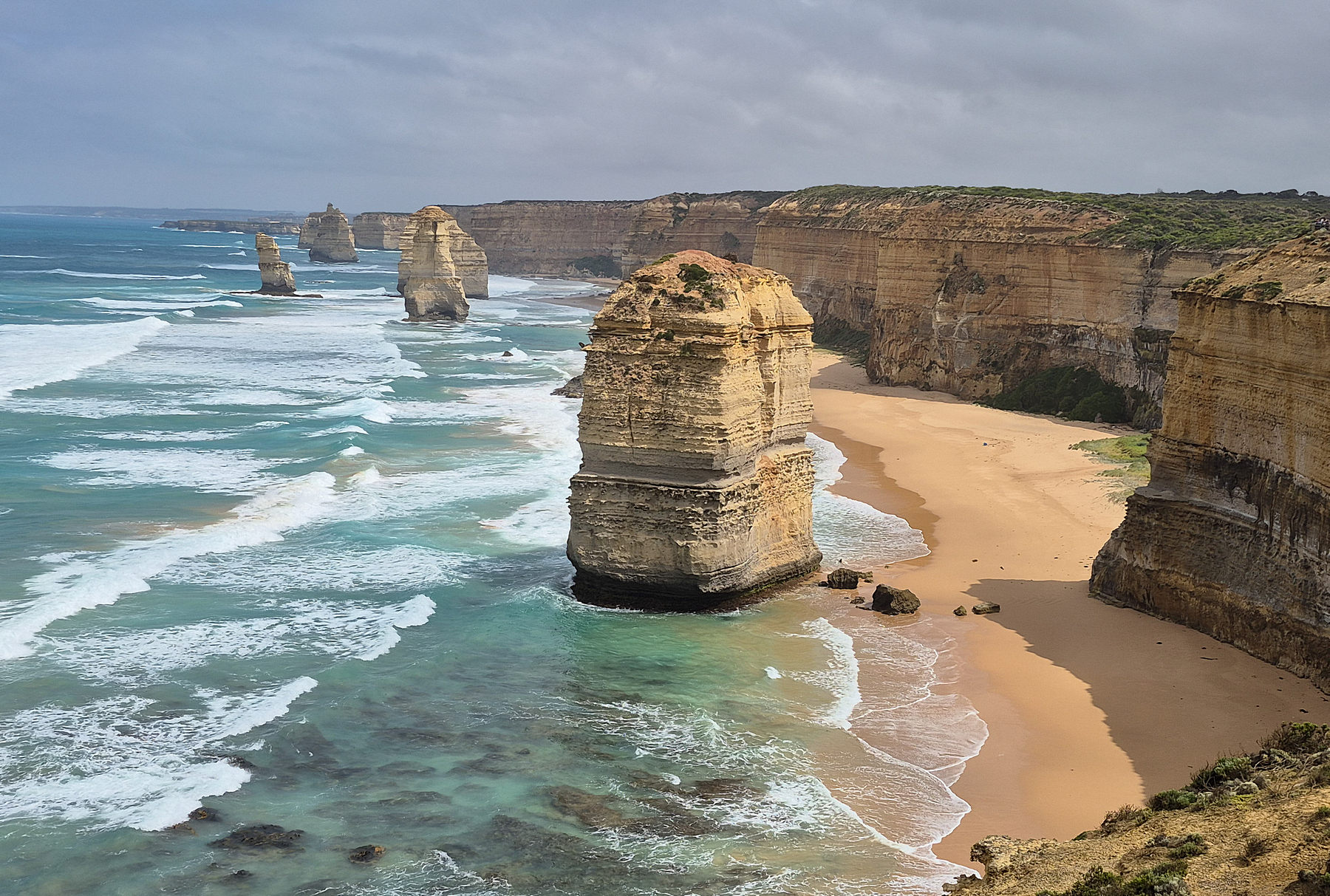 Am nächsten Tag, und wir haben nur diesen einen Versuch, ist das Wetter eher bescheiden und an den Aussichtspunkten an der an sich herrlichen Küste sind wir über jeden Sonnenstrahl froh, um nicht allzu düstere Bilder zu erhalten. Sind wir am Anfang an den Aussichtspunkten noch fast allein, ändert sich das bei den 12 Aposteln schlagartig. Hier kann getrost von einer Massenwanderung gesprochen werden, die sich allerdings wirklich lohnt!