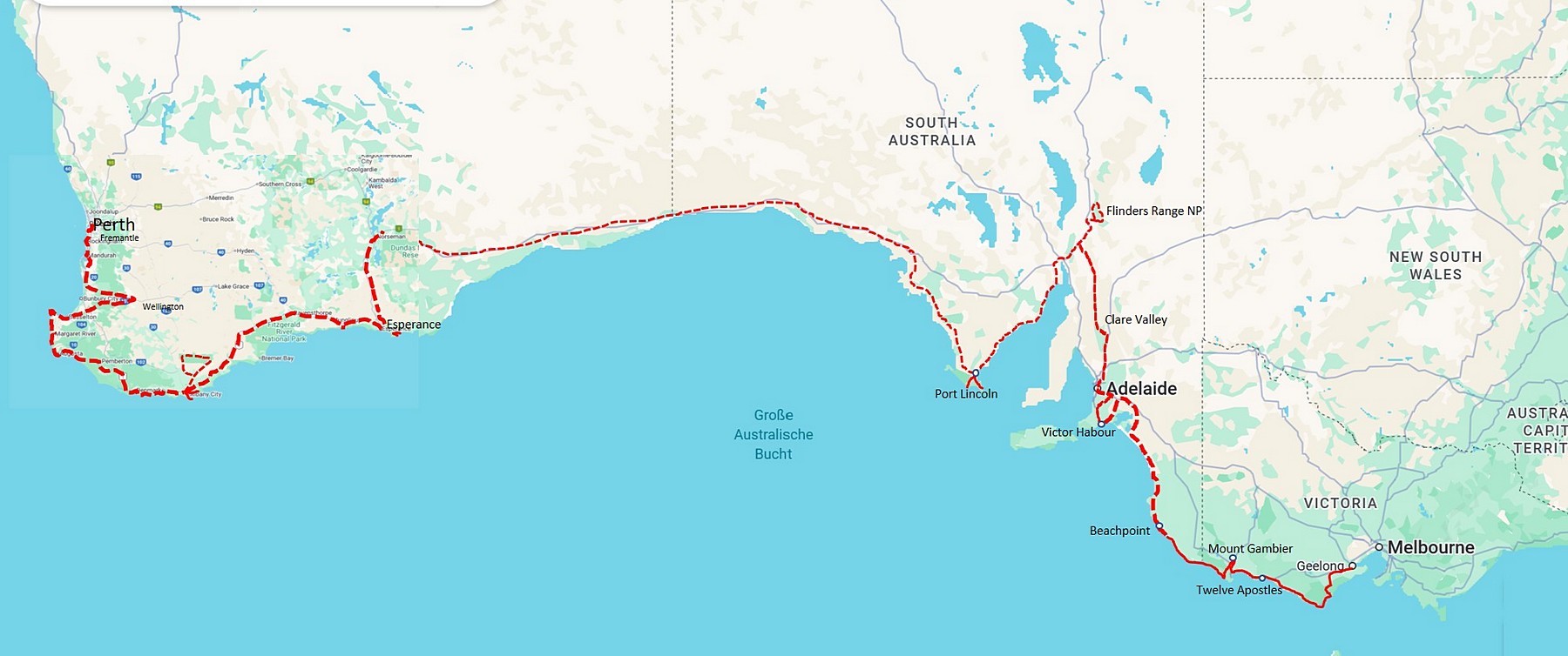 Das heißt, wir müssen in zwei Tagen im Fährhafen von Geelong (bei Melbourne) sein, obwohl wir nicht wissen, ob wir tatsächlich einen Platz bekommen. Der Mount Arapiles ist leider gestrichen und wir machen uns, auf der Great Ocean Road, die Küste entlang auf den Weg. Die Fahrstrecke liegt an der Küste entlang bei etwa 550km.