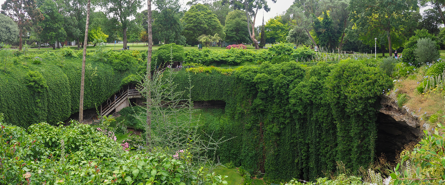 Schon das Cave Garden Sinkhole ist absolut sehenswert, aber besonders das Umpherston Sinkhole mit aufwändig darin angelegtem Garten, verzaubert uns durch seine fast unwirkliche Schönheit.