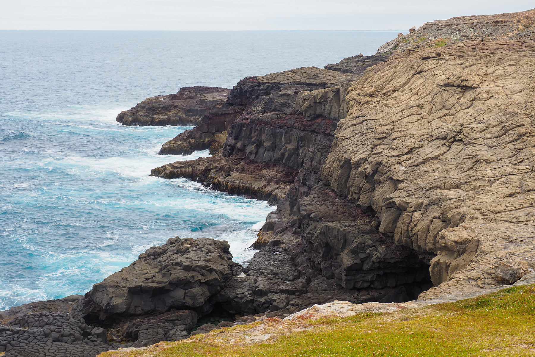 Kurz vor Portland machen wir einen Abstecher zu den Bridgewater Blowholes, wo es bei entsprechender Brandung Wasser aus Löchern in der Küste mit lautem Fauchen senkrecht nach oben drückt. Heute leider nicht. Aber dafür staunen wir über den Petrified Forrest hier, der eigentlich nicht wirklich aus versteinerten Bäumen besteht. Der Anblick dieser skurrilen Gebilde ist trotzdem überaus reizvoll.