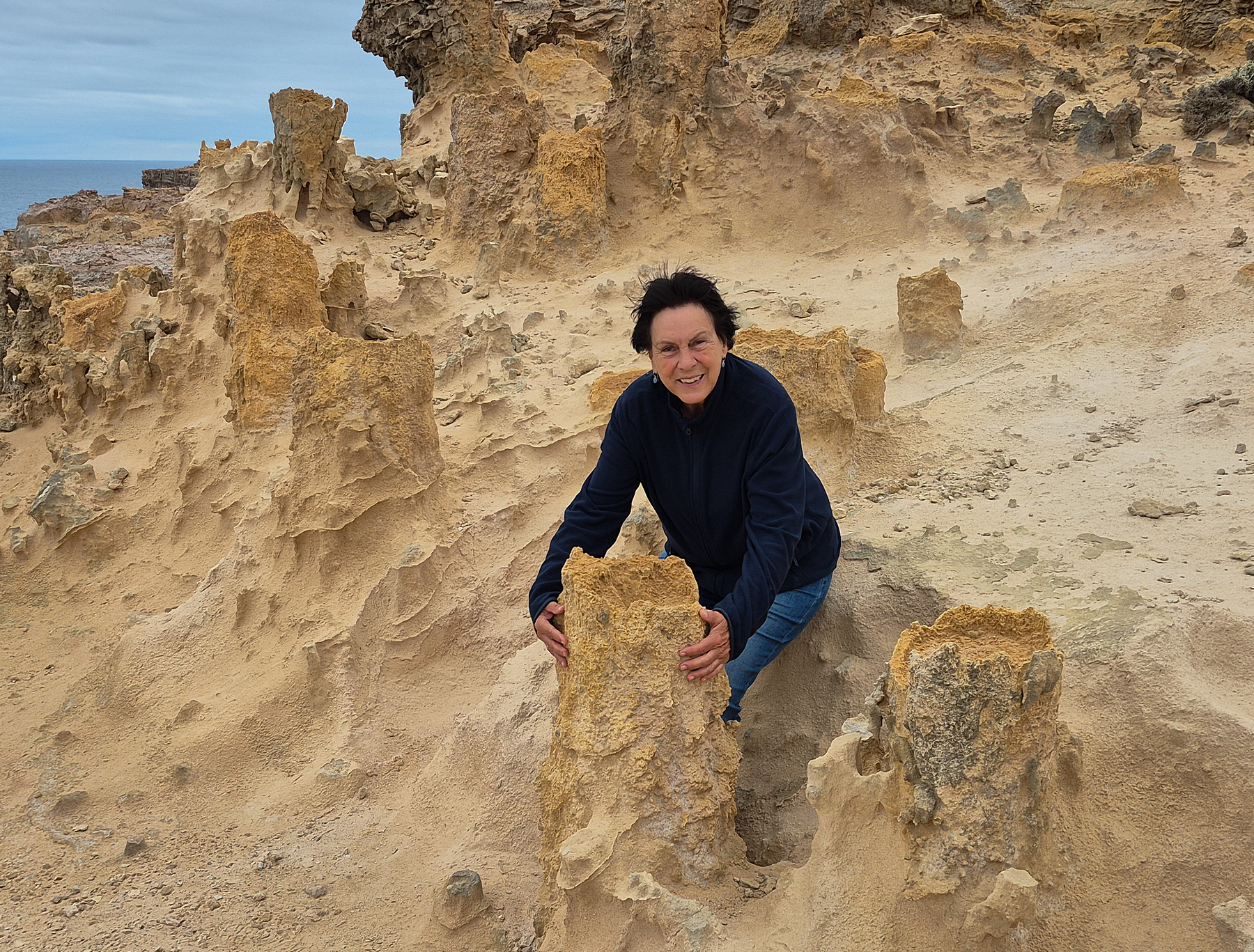 Kurz vor Portland machen wir einen Abstecher zu den Bridgewater Blowholes, wo es bei entsprechender Brandung Wasser aus Löchern in der Küste mit lautem Fauchen senkrecht nach oben drückt. Heute leider nicht. Aber dafür staunen wir über den Petrified Forrest hier, der eigentlich nicht wirklich aus versteinerten Bäumen besteht. Der Anblick dieser skurrilen Gebilde ist trotzdem überaus reizvoll.