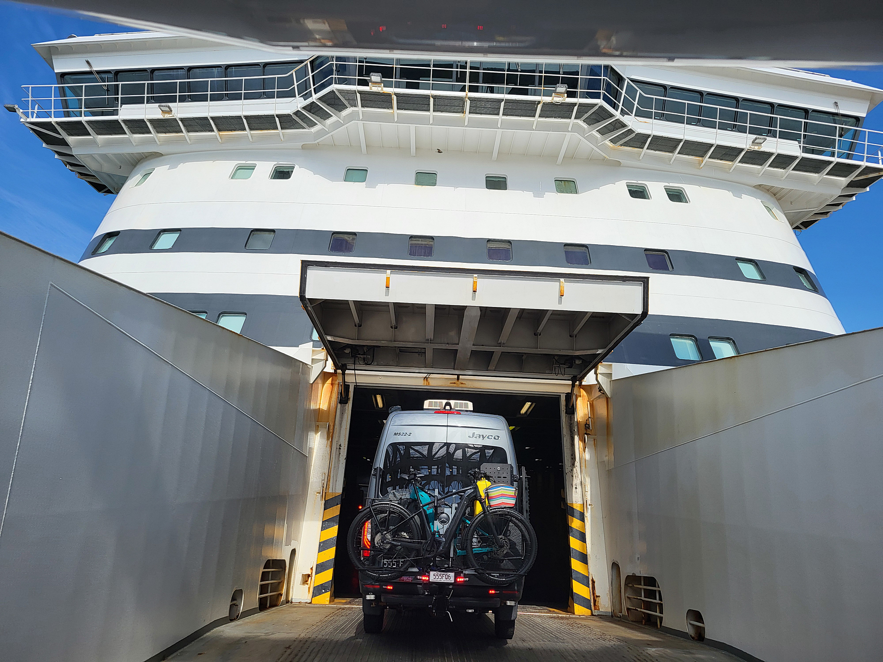 Hier erfahren wir, dass wir tatsächlich einen Platz auf der Fähre bekommen und deswegen müssen wir los, denn die Fähre geht heute Abend. Der weitere Weg an der Küste wäre mir zeitlich zu riskant, ein Weg durch’s Inland muss her. Gar nicht so leicht, denn viele Straßen sind wegen Bränden gesperrt. So fahren wir in einem kleinen Zickzackkurs, vorbei an Kreuzungen, wo die Nebenstraßen gesperrt sind und mit Rauchgeruch in der Luft hoch zur Schnellstraße, über die wir letztlich gut in der Zeit den Fährhafen erreichen.