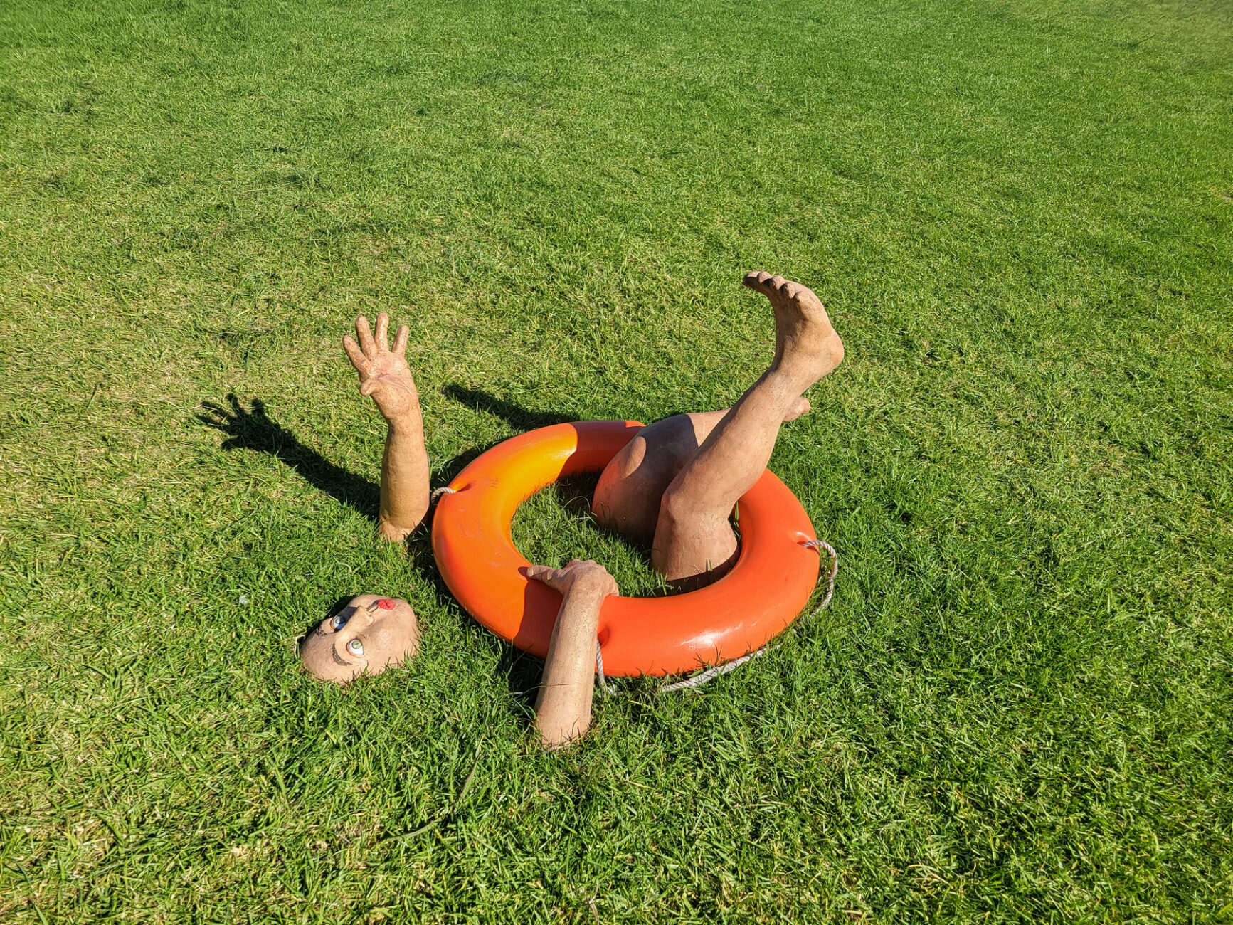 Direkt vor unserem Campingplatz wurden auf einer weitläufigen Wiese, schön verstreut, etwa 30 Skulpturen verschiedenster Künstler aufgestellt. Wie meist gibt es diejenigen die man als ansprechend wahrnimmt, andere, zu denen man eher keinen Zugang findet.
