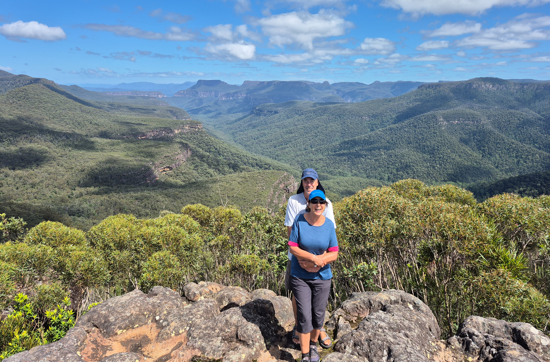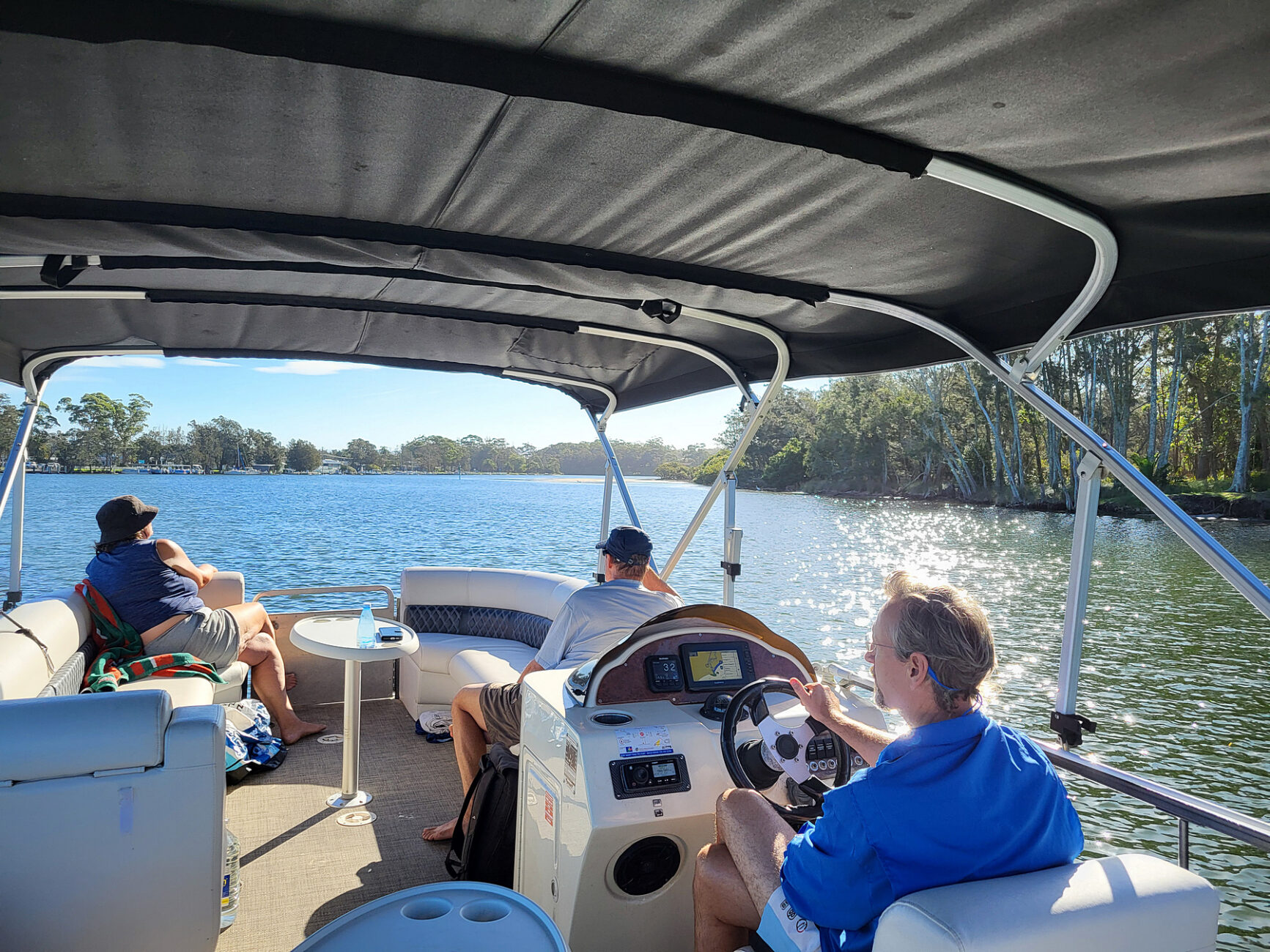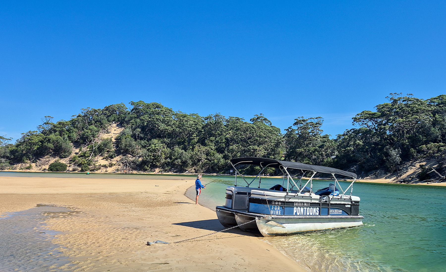 Die folgenden kurzweiligen Tage verbringen wir wieder mal mit Ines und Roland, die in Sussex-Inlet gerade einen House Sit haben, dort also auf ein Haus (mit Hund und Katze) aufpassen, während die Besitzer verreist sind. Wir wandern gemeinsam den Mt. Bushwalker Track zu einem herrlichen Aussichtspunkt und mieten für einen halben Tag ein sehr bequemes Ponton-Boot, um damit die Wasserverbindung zwischen Inlet und Meer zu erkunden. Ines zeigt Monika auch noch einen natürlichen Felsenpool zum Baden. Schöne, entspannte Tage…