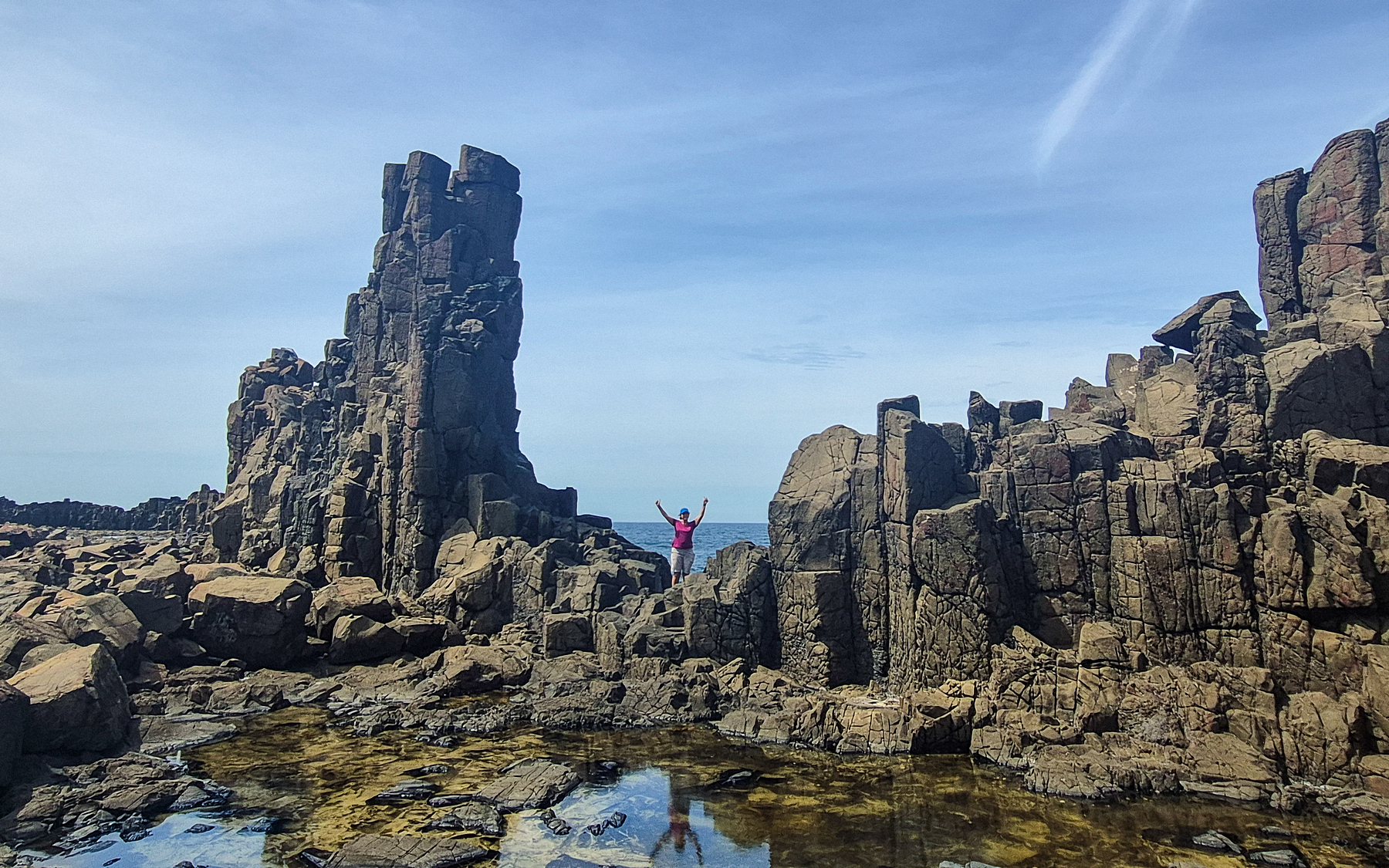Auf dem Weiterweg sehen wir uns den Cathedral Rock an und erkunden gleich daneben noch die Küste mit ihren vielen Felsformationen.