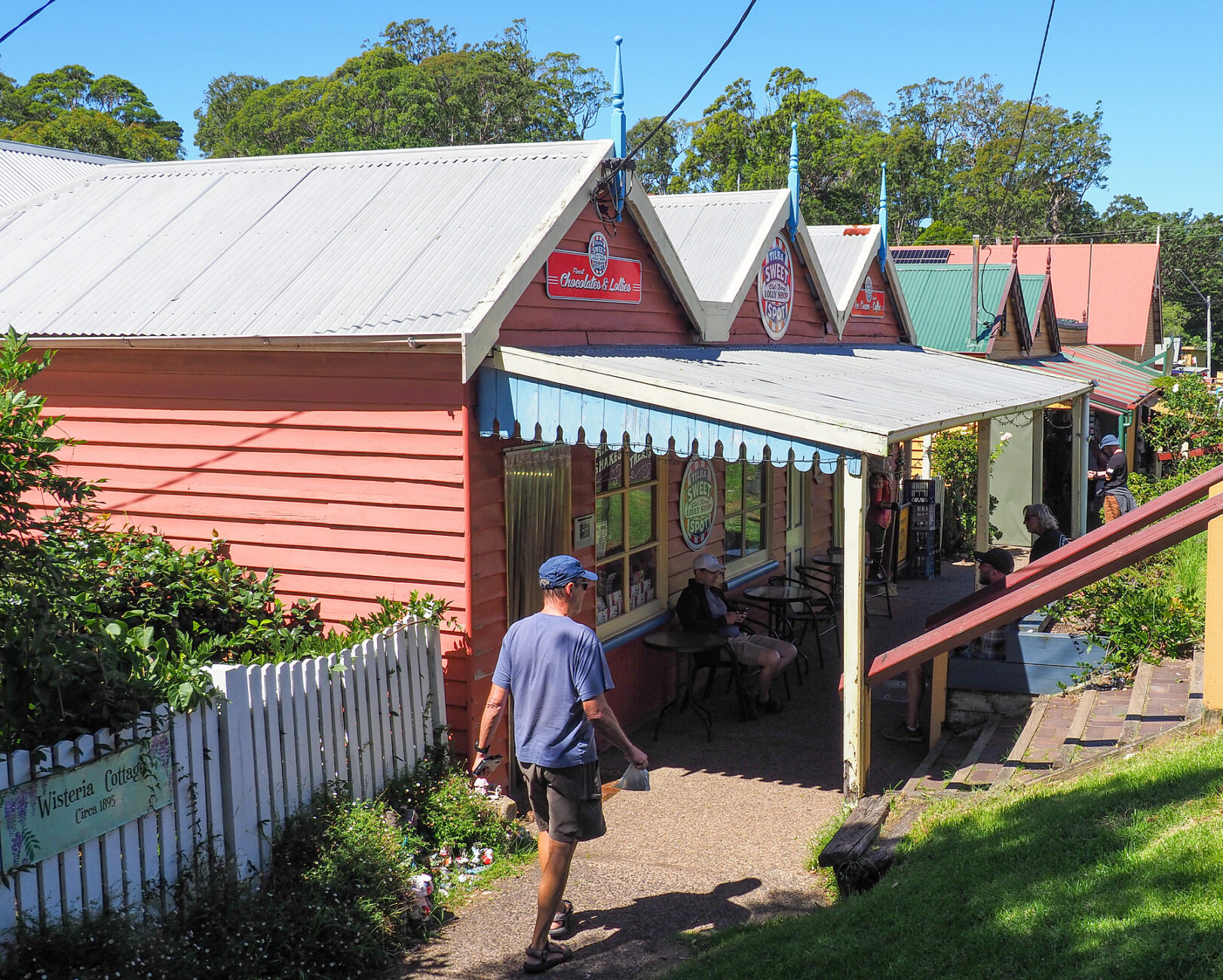 Im fotogenen Örtchen Tilba Center, direkt am Highway gelegen, machen wir einen Bummel durch die überschaubare „Hauptstrasse“. Die Zeit scheint hier irgendwie stehen geblieben zu sein und wir machen wieder viel zu viele Fotos von den idyllischen, bunten Holzhäusern.