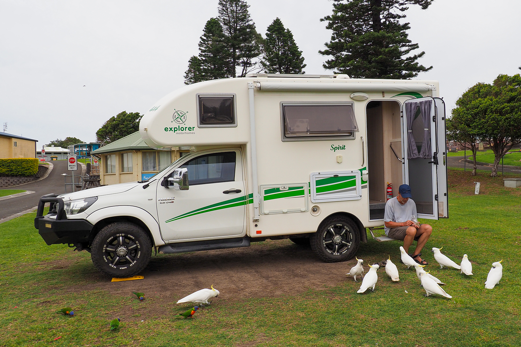 In Wollongong bleiben wir auf dem Bulli Beach Tourist Park, wo ich, dank Sonnenblumenkernen, sofort (teils aufdringliche) Freunde finde.